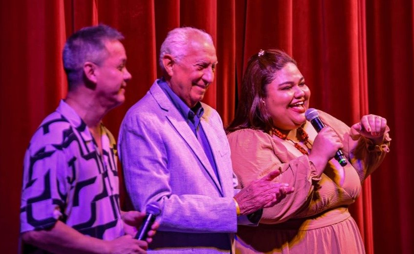O reitor subiu ao palco e contemplou a música composta em sua homenagem, "Menino Ribeirinho". A canção, de autoria de Giovanni Sena e Ketlen Nascimento, exalta a história, valores e trajetória inspiradora do reitor, personalidade de grande contribuição para o Amazonas.